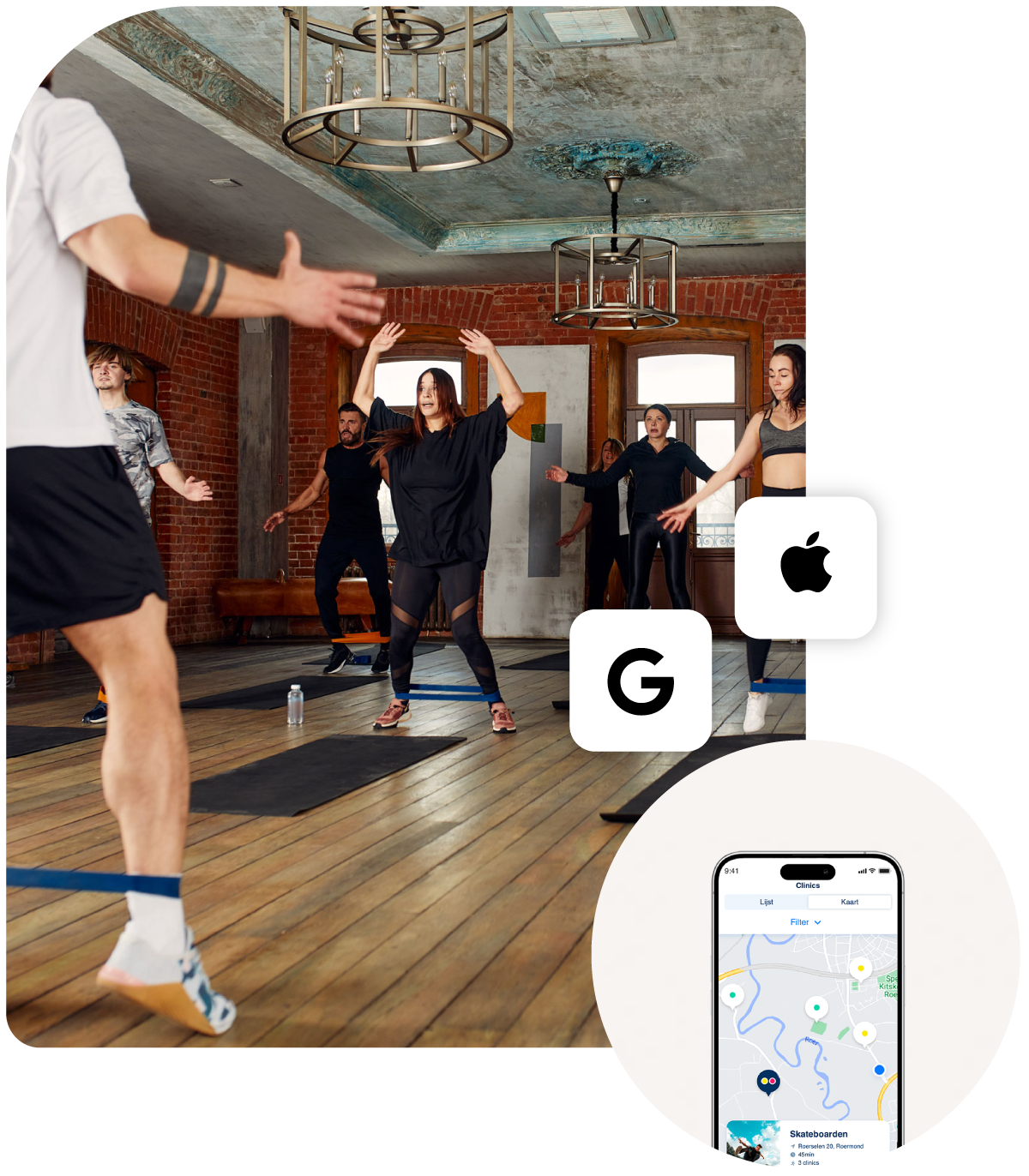 Clinics kun je eenvoudig beheren. Vind ze in de bibliotheek of op de kaart en schrijf je in met één klik.